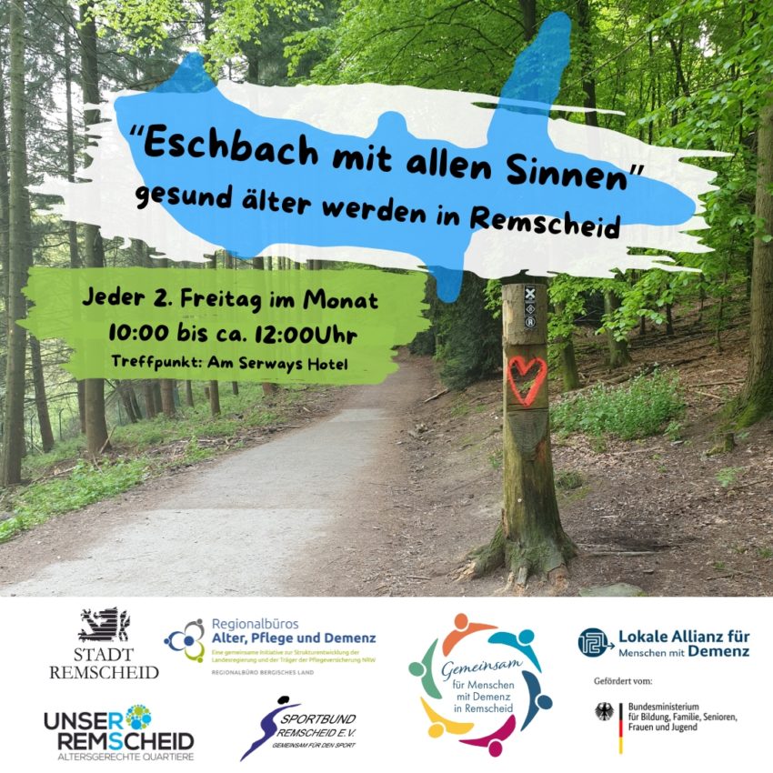 Im Jahr 2025 haben im Rahmen der Lokalen Allianz für Menschen mit Demenz mehrfach die gemeinsamen „Spaziergänge“ um die Eschbachtalsperre stattgefunden. Zusammen mit Daniel Schmidt von der altersgerechten Quartiersentwicklung der Stadt Remscheid haben wir bei den Spaziergängen um die Talsperre (ca. 3km) neben einem netten Austausch unsere Sinne auf die Umgebung gelenkt und die Natur erkundet und sind somit einmal mehr dem alltäglichen entflohen. Zu den Angeboten ist jeder und jede mit und ohne Einschränkungen eingeladen. Vorausgesetzt wird nur, dass die Strecke aus eigener Kraft oder mit Unterstützung z.B. durch Pflegende überwunden werden kann. Eine Anmeldung ist nicht notwendig. Wetterfeste Kleidung und festes Schuhwerk werden empfohlen.